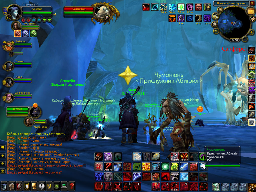 А меня почему-то на скрине с Сапфироном нету, хотя мой вклад в тот поход был очевиден и незаменим)